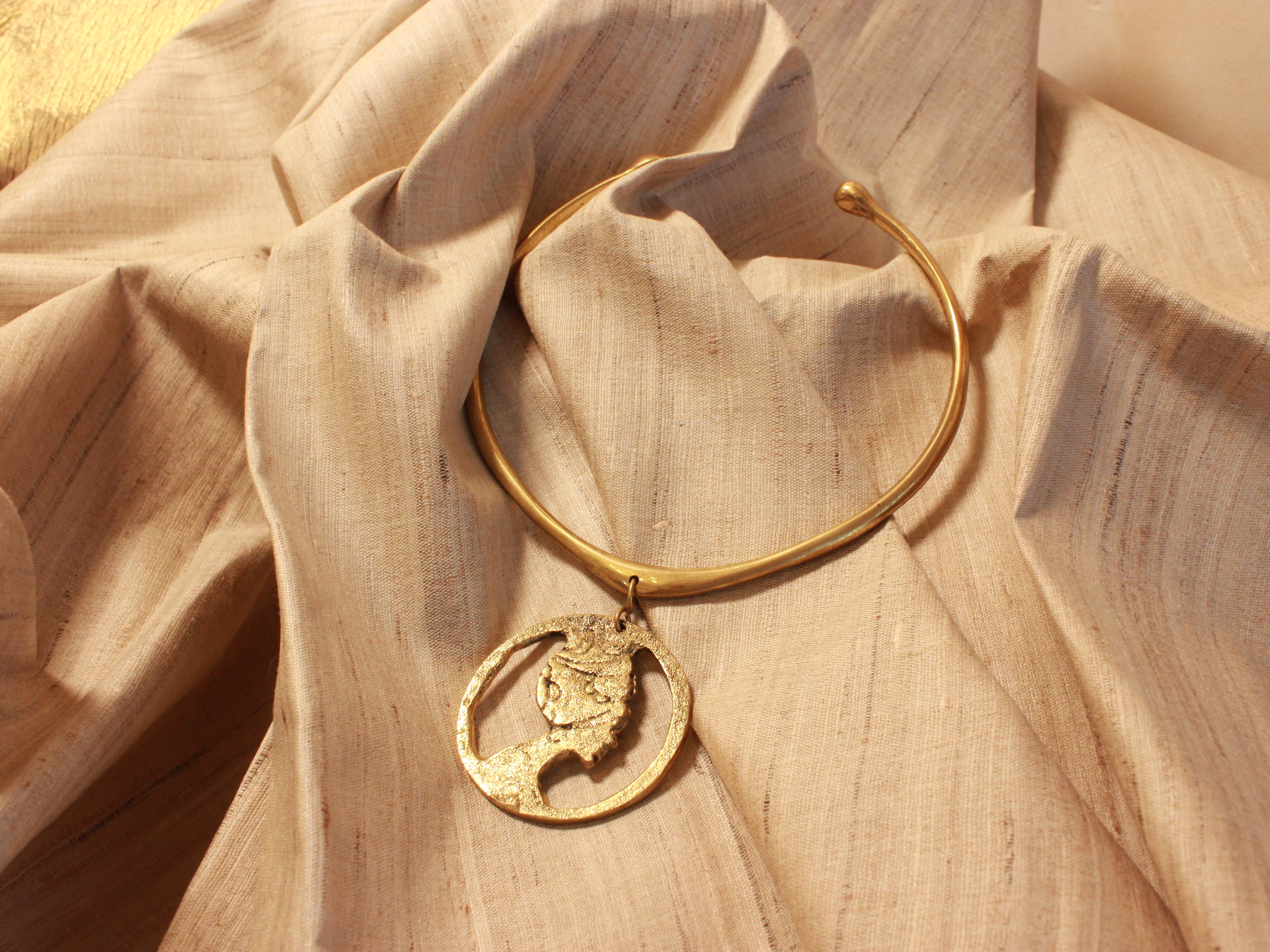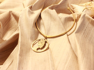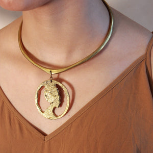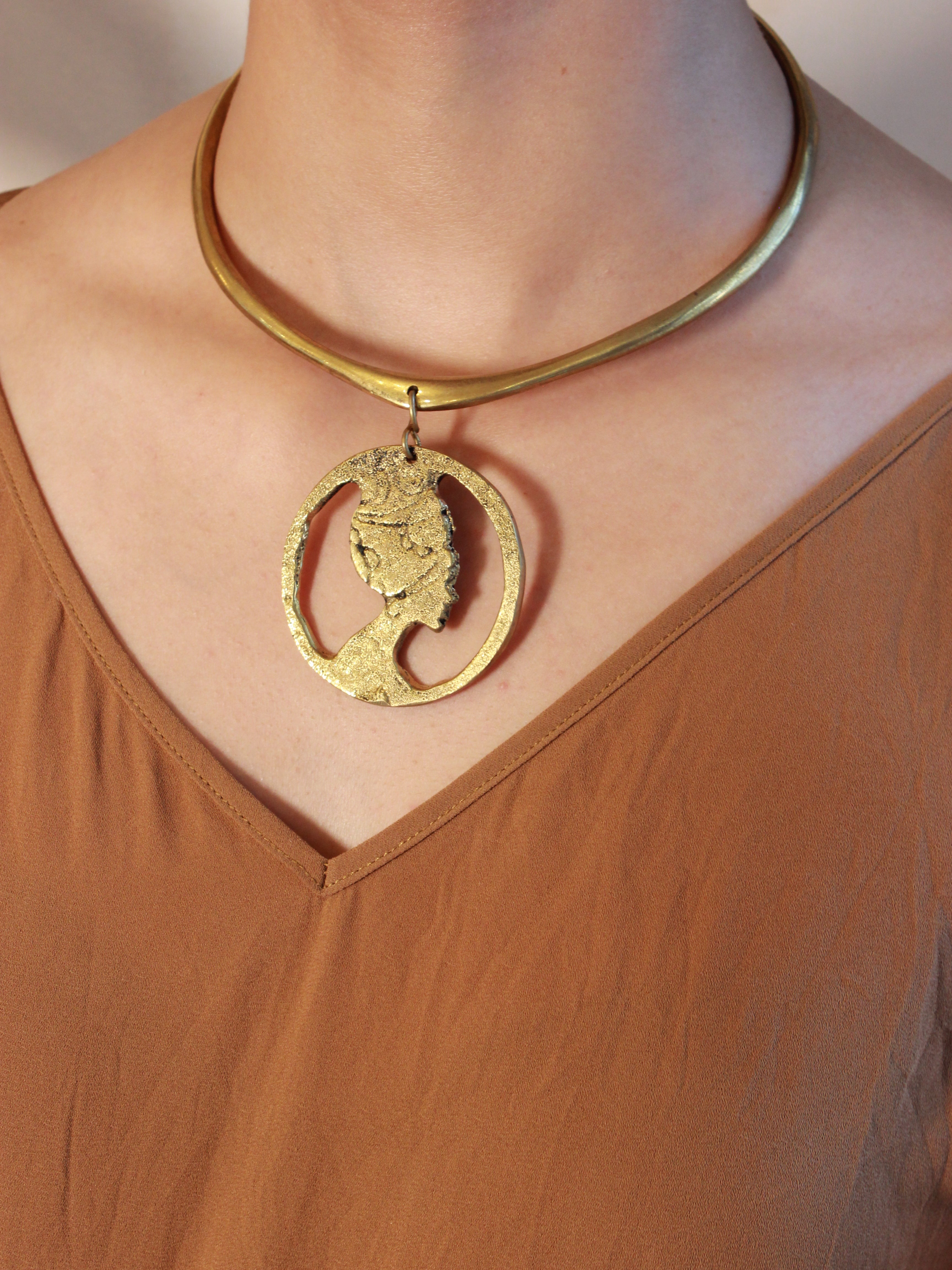 Saharan choker features a minimalist yet striking brass design that showcases a pendant silhouette of an African woman. Ships within 2 working days.