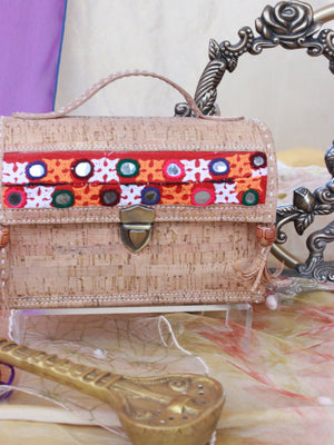 For our vegan friends, Romaani presents a Cork Bag, beautifully crafted with colorful mirror work on the flap. This eco-friendly, handcrafted bag offers a unique blend of sustainability and style. Lined...