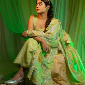 This set includes a chic square-necked blouse, straight-fit pants, and a pre-stitched saree drape, offering a blend of convenience and sophistication. Whether you’re hosting or attending, the Barkha Saree Drape ensures you stand out with grace. See the last image for size chart.