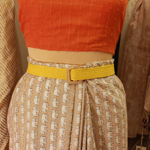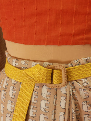 Light up your outfit with the Bright Yellow Slim Jute Belt. This thin, elasticated belt is 50" long and 1" broad, and it comes with a 1.5" straw buckle that complements the sunny, cheerful hue. Its vibrant color makes it the perfect accessory to brighten up any ensemble. Cinch this belt over a white summer dress or a linen shirt for a pop of color that screams summer chic.