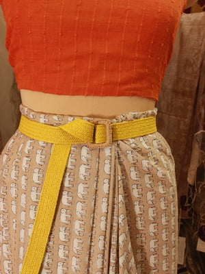 Light up your outfit with the Bright Yellow Slim Jute Belt. This thin, elasticated belt is 50" long and 1" broad, and it comes with a 1.5" straw buckle that complements...