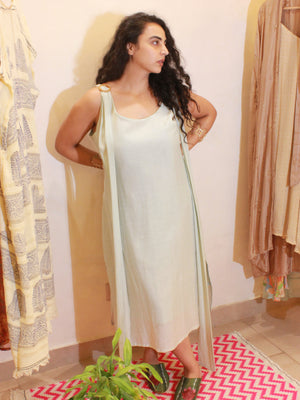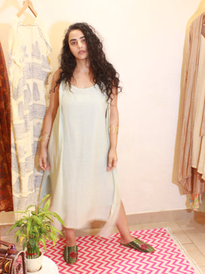 Elevate your warm-weather style with this chic blue linen dress. Featuring adjustable buckle tie shoulder straps, this dress allows you to customise the fit for a flattering silhouette that's effortlessly stylish.