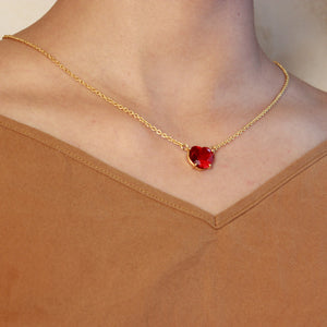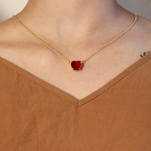 The Rudra Heart Pendant Necklace features a delicate red stone heart, symbolizing love and passion. Suspended on a fine gold chain, this dainty necklace adds a pop of color and charm...