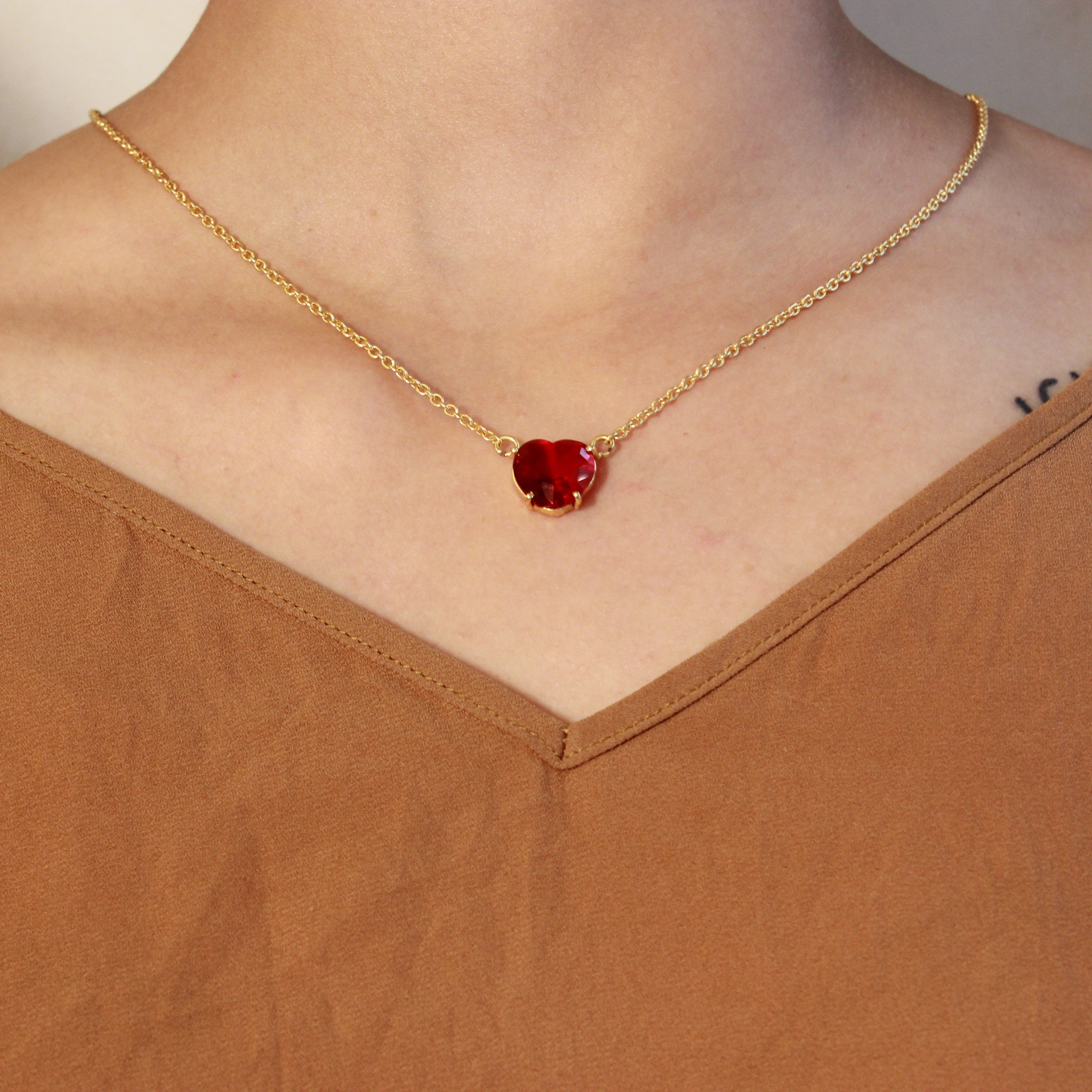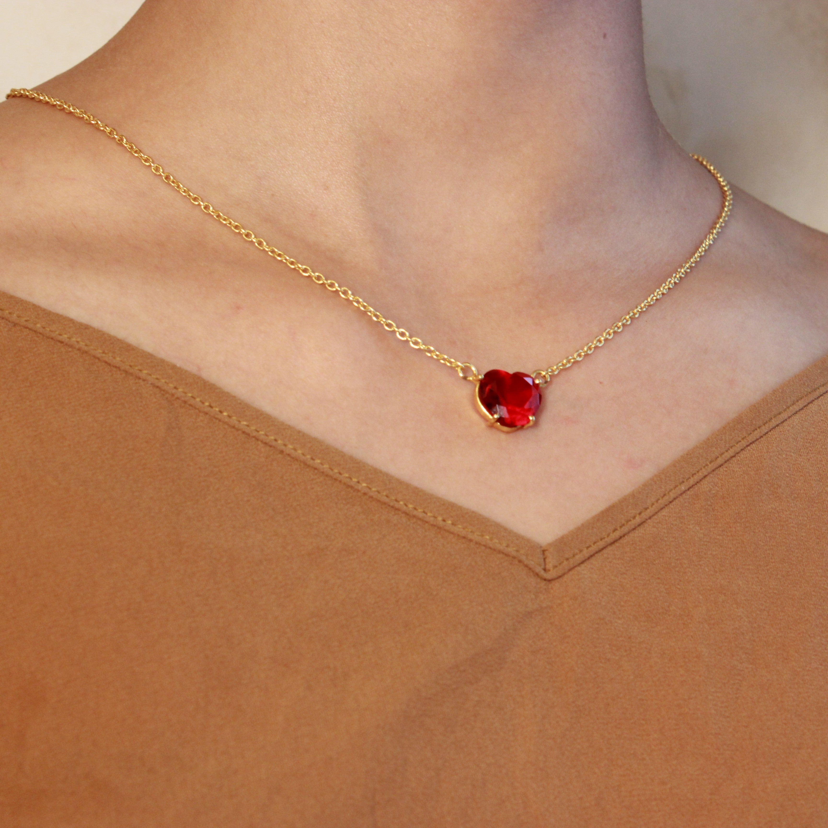 Pair it with a deep neckline to showcase the vibrant heart pendant or layer it with other fine chains for a stylish stacked effect.