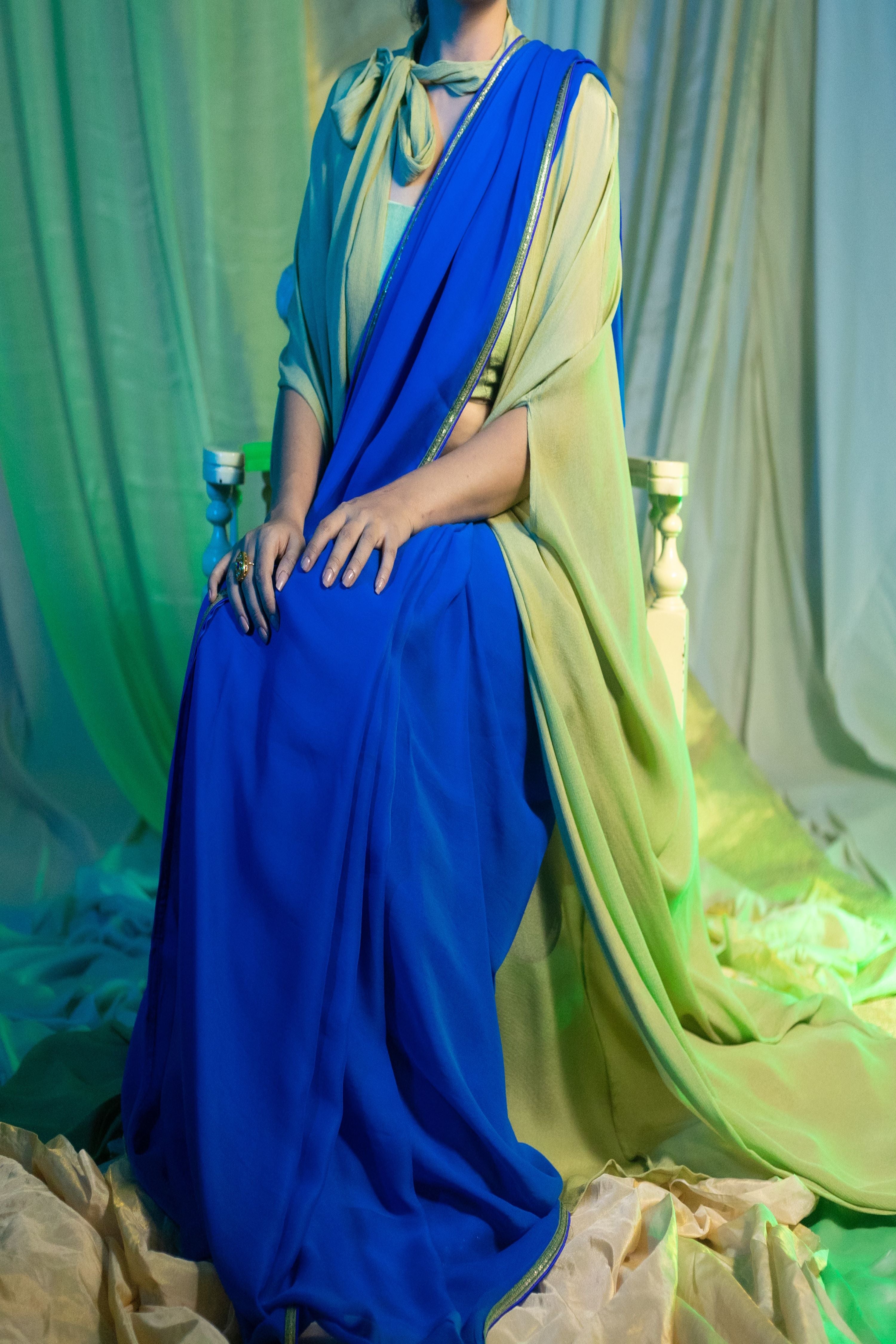 One size fits all. Our Keya Bow Tie Cape in muted green chiffon adds a touch of refined elegance to your outfit. This free-size cape features a classic bow tie design, making it a versatile and stylish addition to your resort wear as well as festive wardrobe. See the last image for size chart.