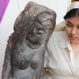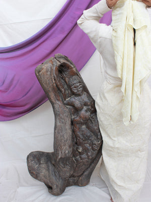 Hand-carved from ancient wood fossils, the sculpture features abstract form of feminine grace, this one-of-a-kind creation exude an enigmatic charm, blending rustic beauty with contemporary artistry. Perfect as a statement décor piece...