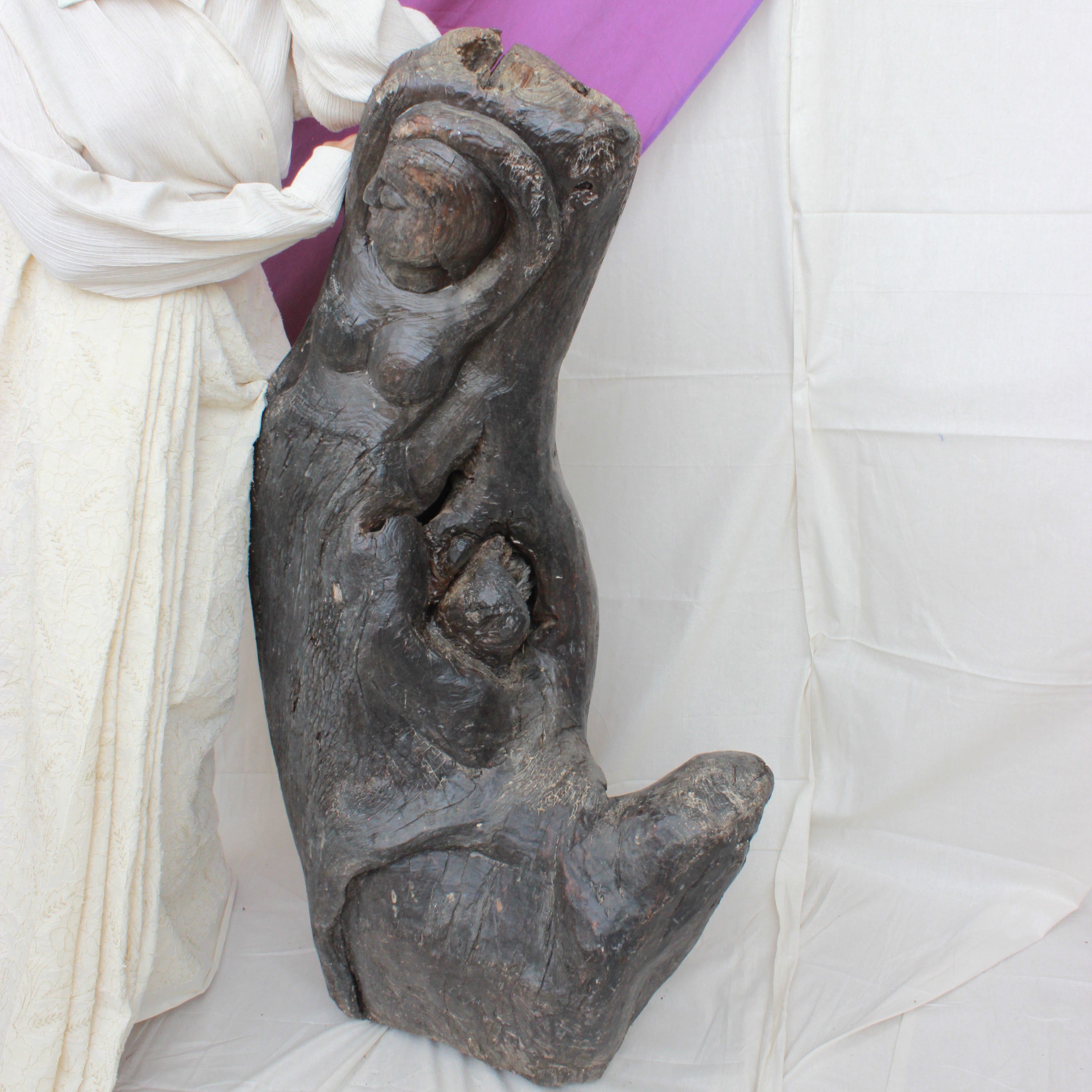 Hand-carved from ancient wood fossils, the sculpture features abstract form of feminine grace, this one-of-a-kind creation exude an enigmatic charm, blending rustic beauty with contemporary artistry. Perfect as a statement décor piece for your home or workspace.