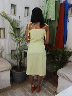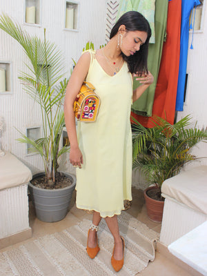 Discover the refined allure of our Mridyudyaan Collection with these versatile slip dresses, designed for the modern muse. Featuring a graceful V-neckline, each dress is crafted from lightweight chiffon or georgette and includes adjustable straps for personalized fit. Choose from these captivating options: a soft green with a textured georgette, a soft pastel yellow. Embrace a piece that brings breezy sophistication to any occasion. See the last image for size chart.