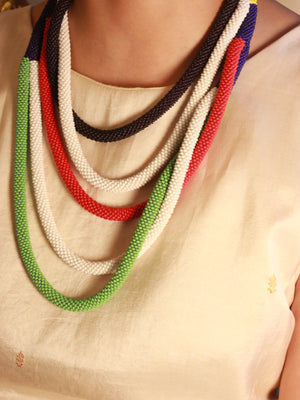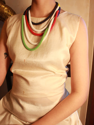 The Jina Multilayered Necklace is a beautiful display of African craftsmanship, featuring overlapping strands of multicolored beads. This striking necklace is designed to add layers of texture and color, creating a...