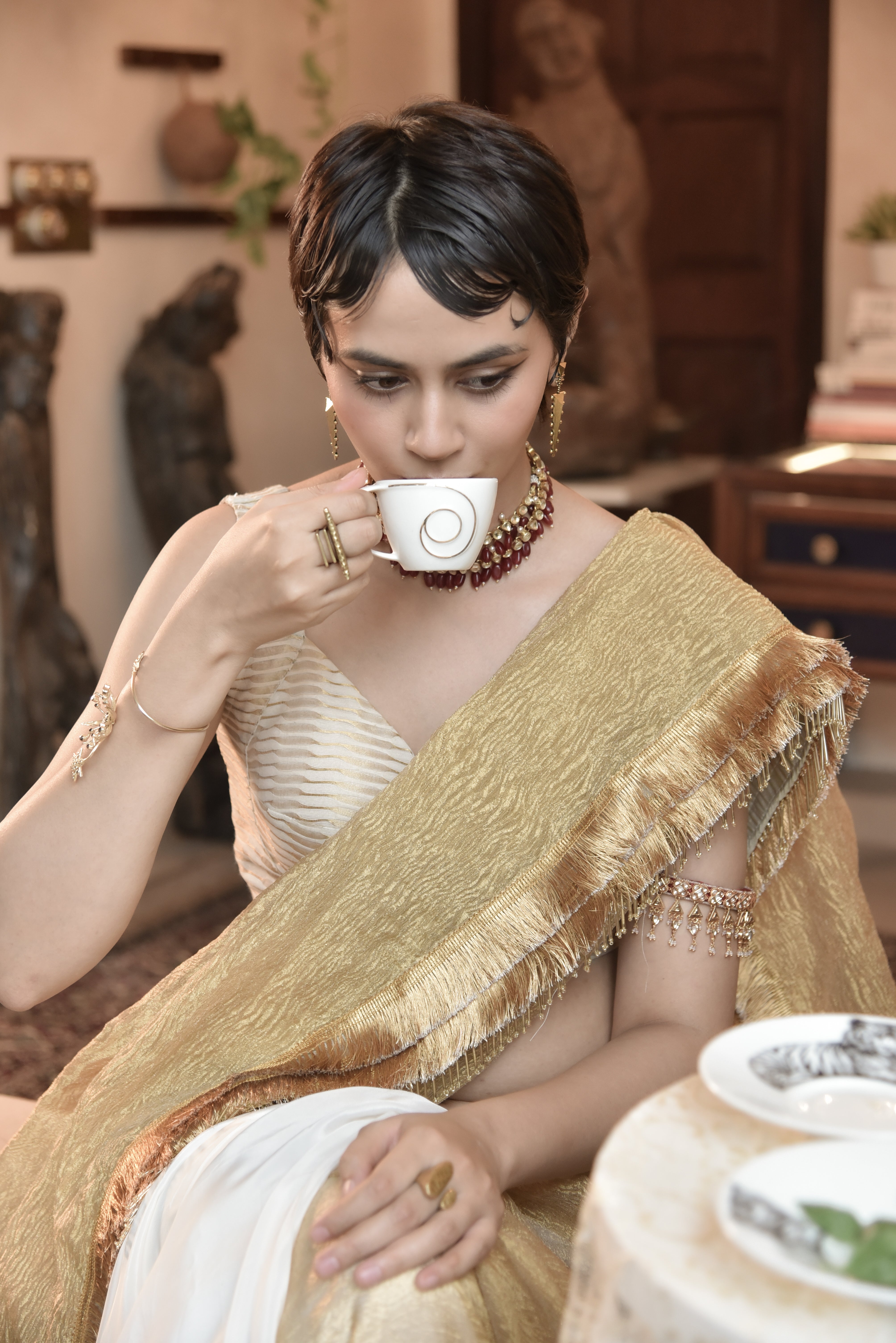 For the woman who celebrates ease and elegance alike — a ready-to-wear drape that captures Roop’s refined, effortless femininity.