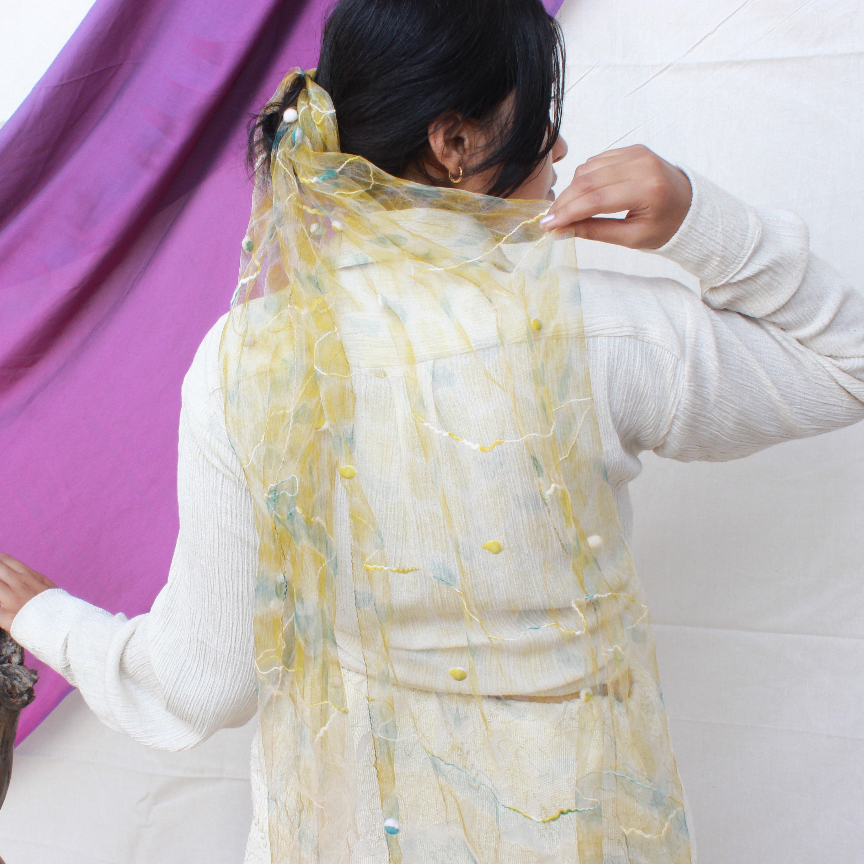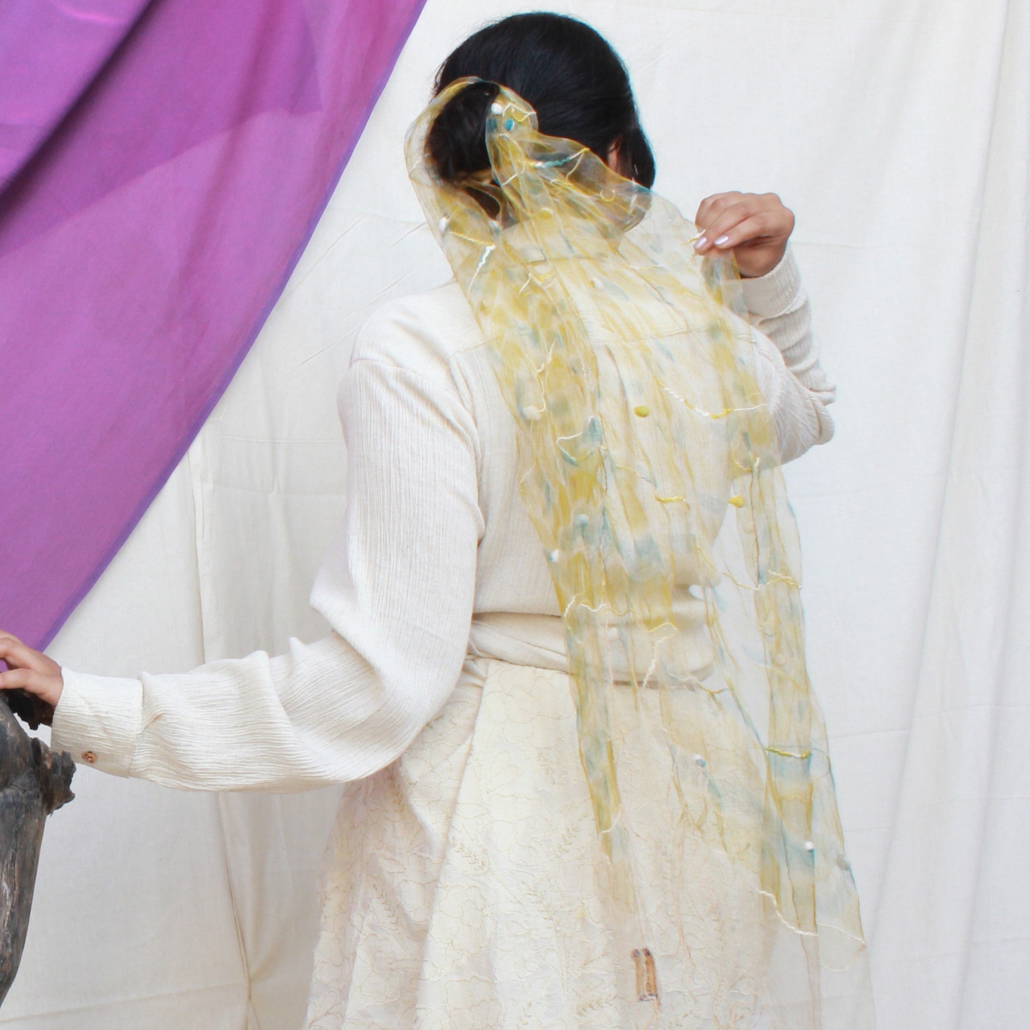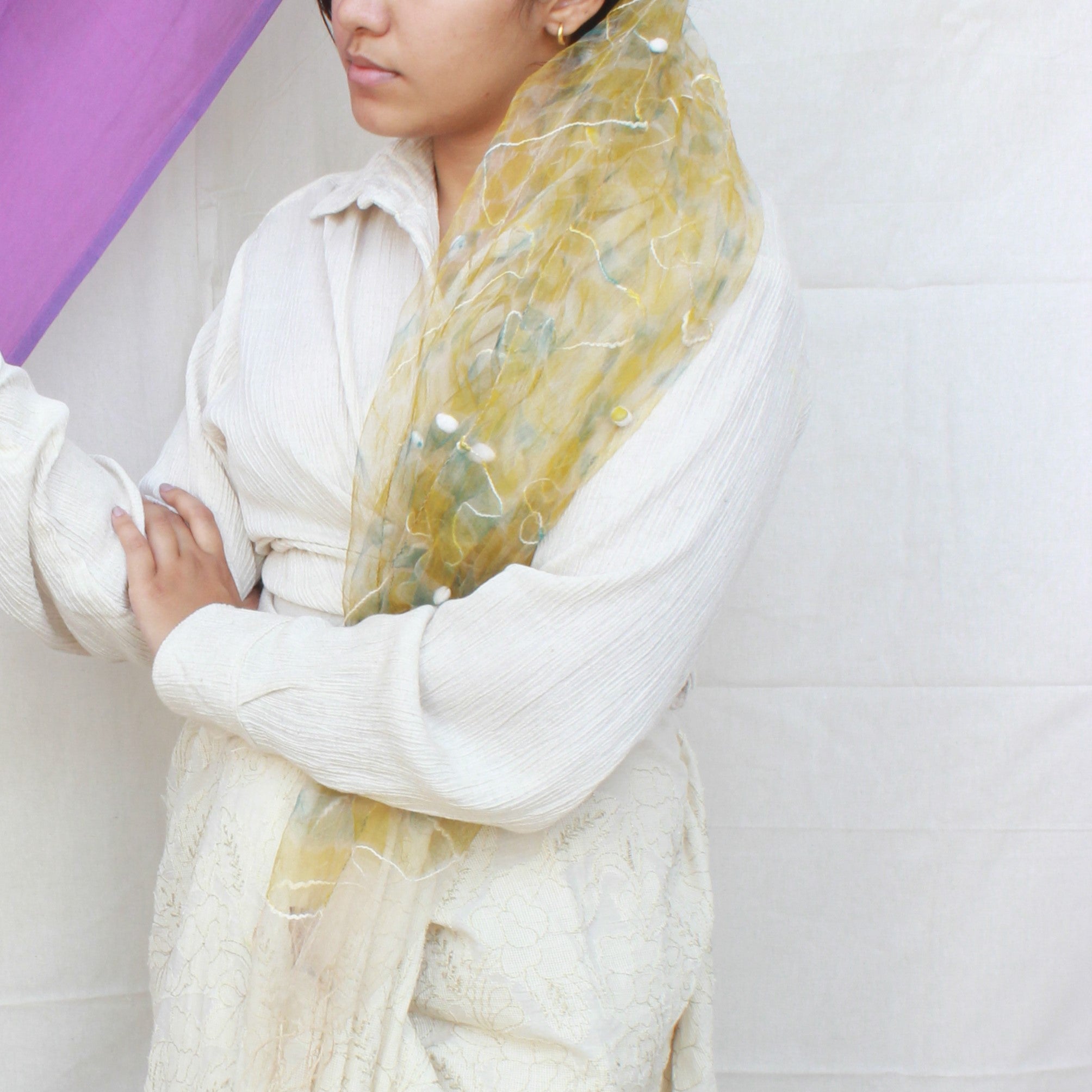 The mirage scarf embodies the visual mirages and comes in color variants. Lightweight and easy to wear, these scarves provide the perfect finishing touch with a subtle charm. Ships within 2-3...