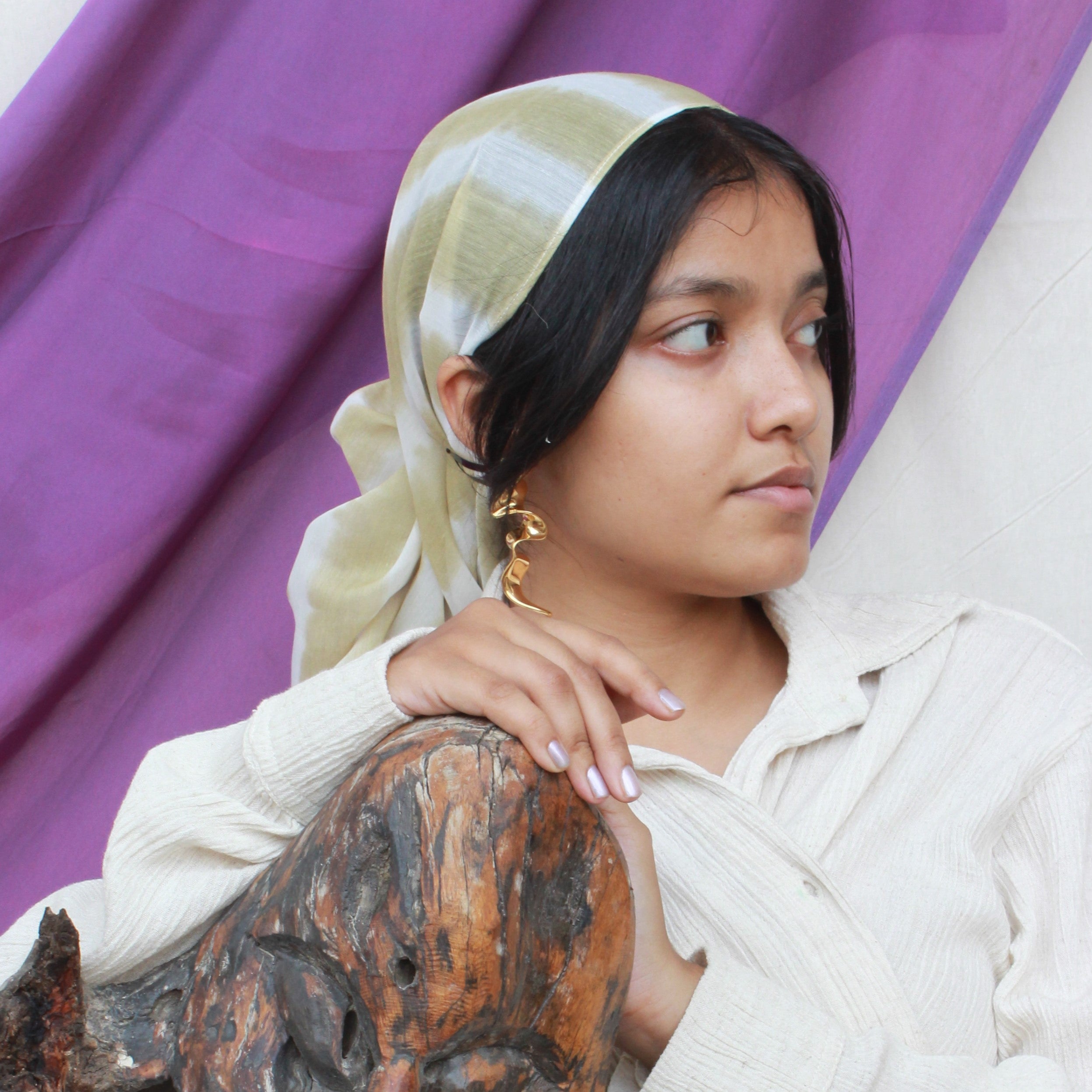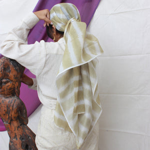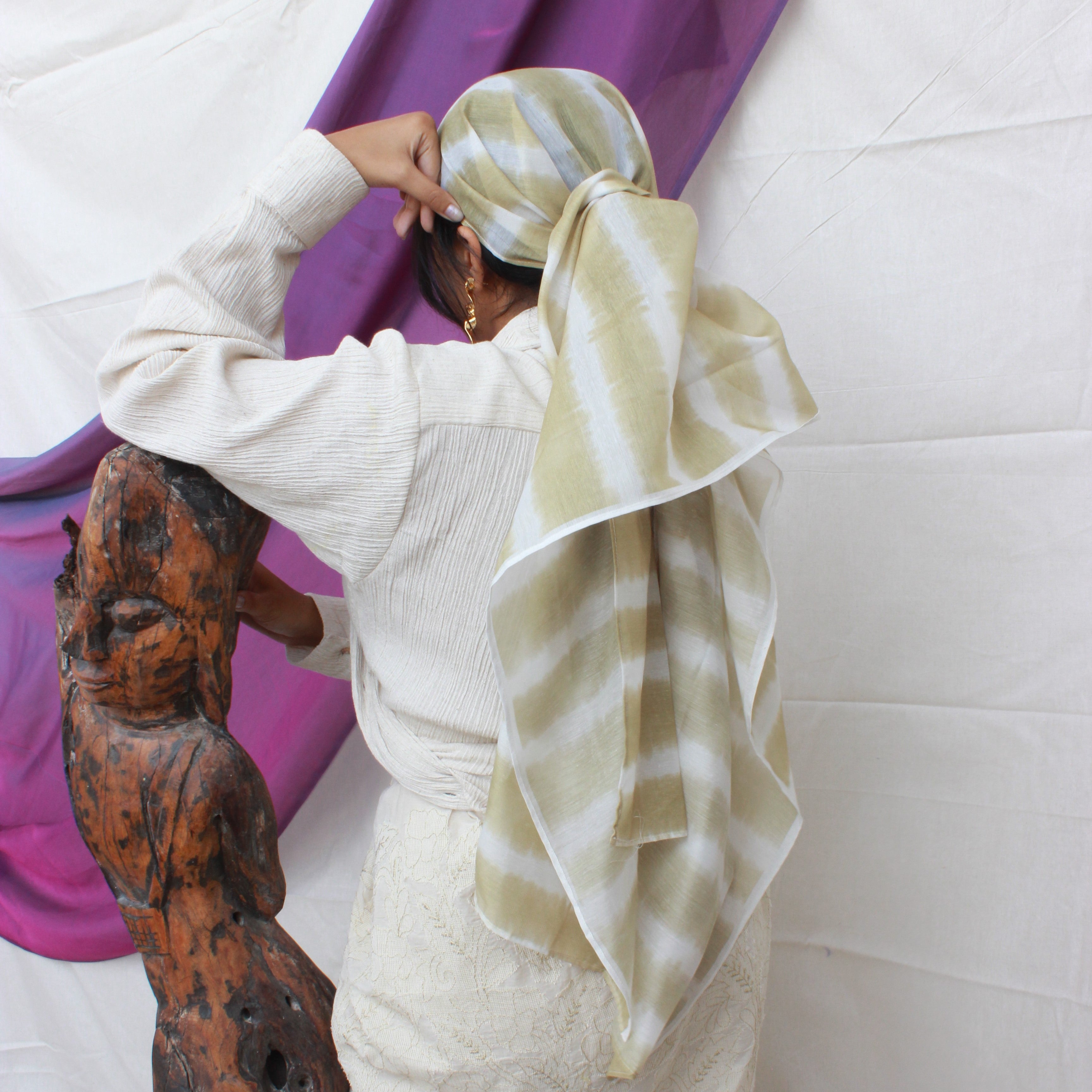 Inspired by desert landscapes, this Organza Chanderi Scarf in olive green and white captures the beauty of cactus stripes in soft, airy fabric.