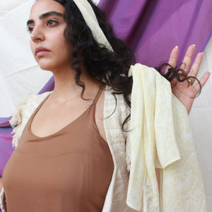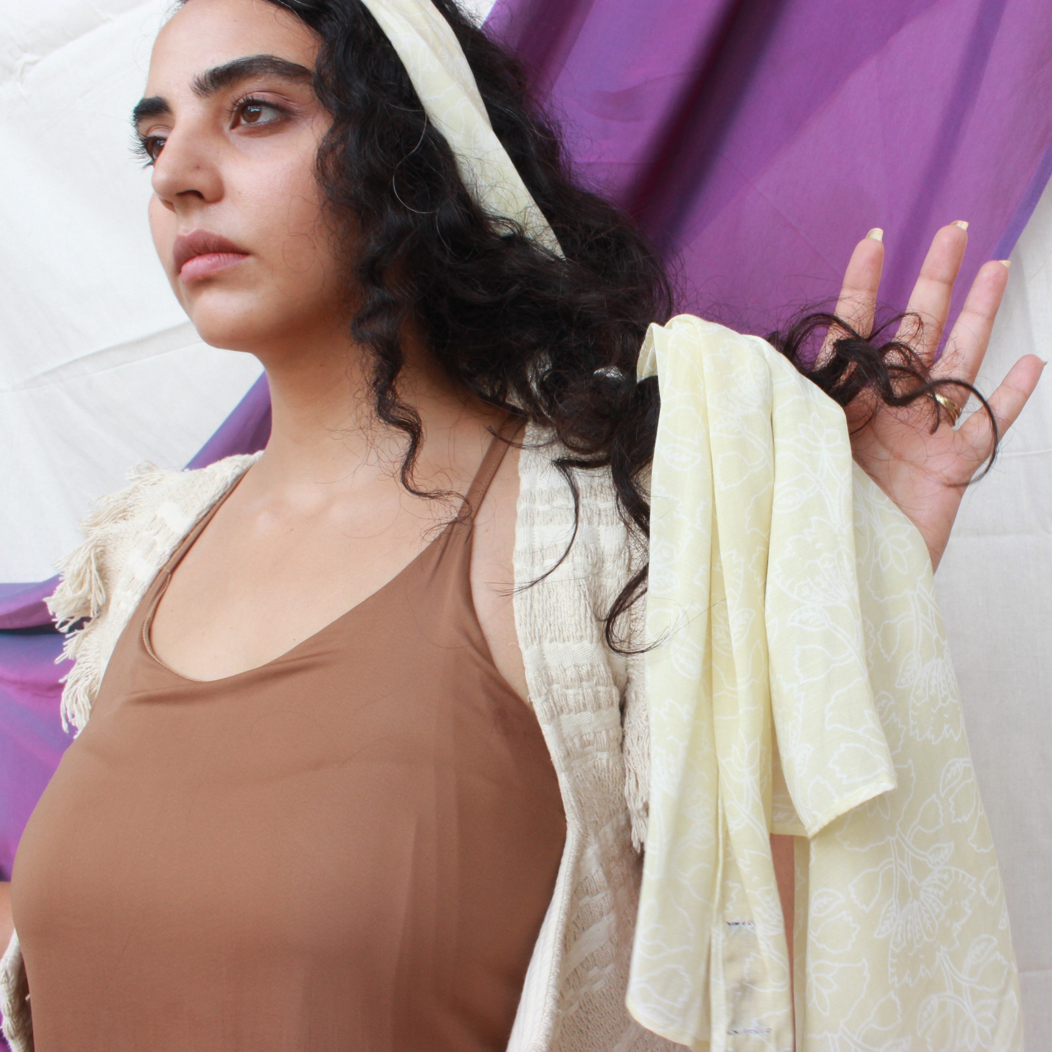 A timeless addition to your wardrobe, this cream scarf with a delicate floral pattern is crafted in a luxuriously silky fabric for an elegant drape. The soft hues make it easy to pair it up. Ships within 2-3 working days.