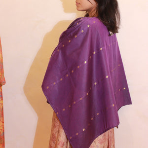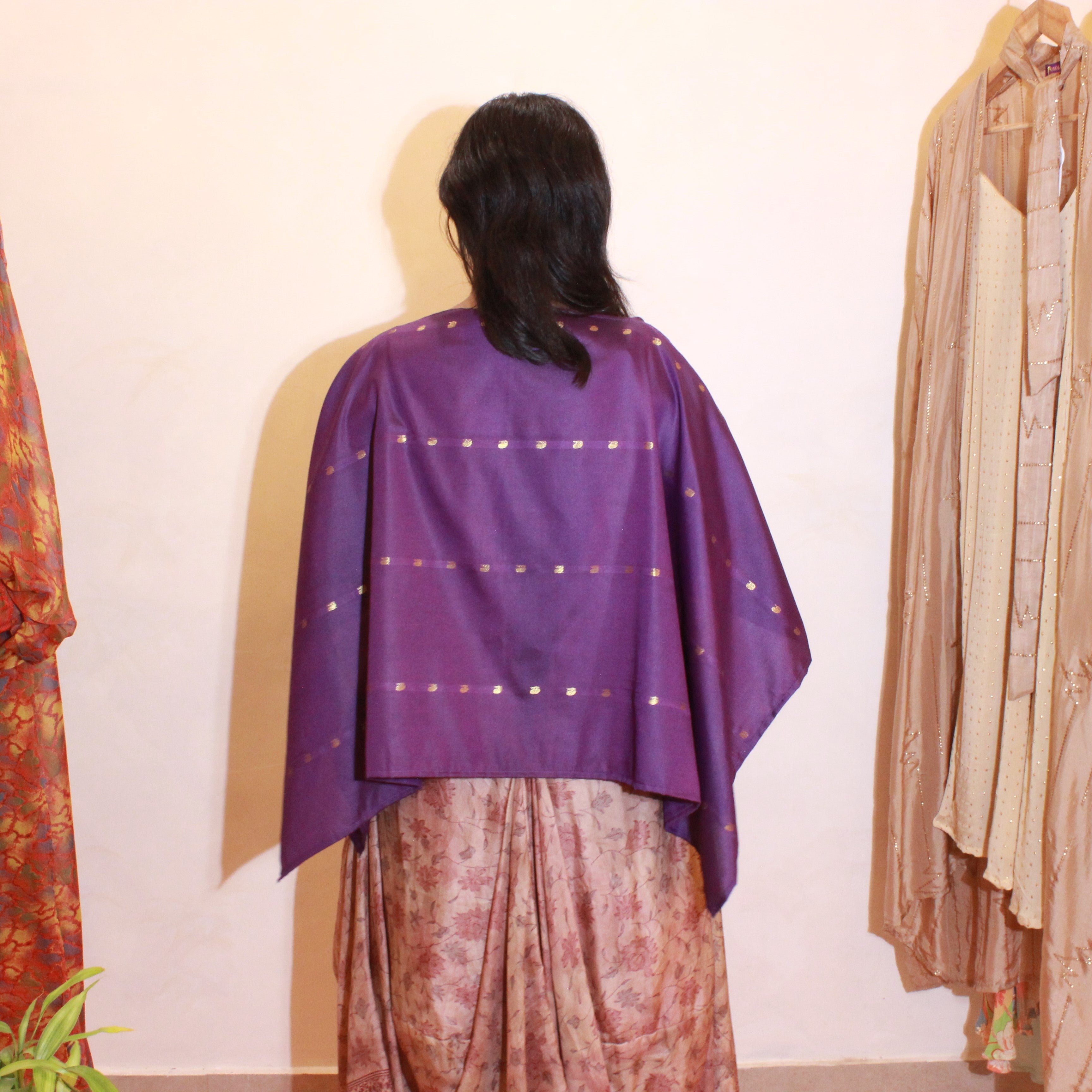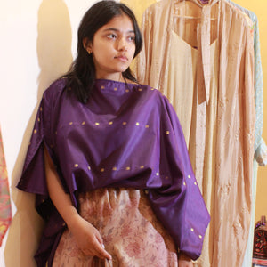 Crafted from a preloved silk saree, this handkerchief top with gold bootas is festive and versatile. Style it as a dress or pair with pants. (Free size)