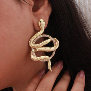 Make a bold statement with the Sarpin Snake Earrings, featuring a swirling brass snake wrapped around a circular base, accented with CZ stones. These earrings exude power and mystery, making them perfect for those who embrace their inner strength.