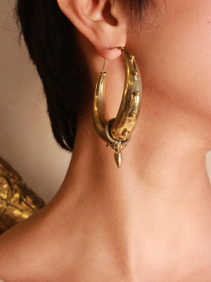 The Kundal Earrings draw inspiration from the resilience of tribal communities to the regality of royalty. Featuring a bold spear-like centerpiece, these iconic kundal earrings transcend social boundaries and historical eras, symbolizing strength and grace. Pair them with traditional or contemporary outfits to make a statement that honors history and individuality.